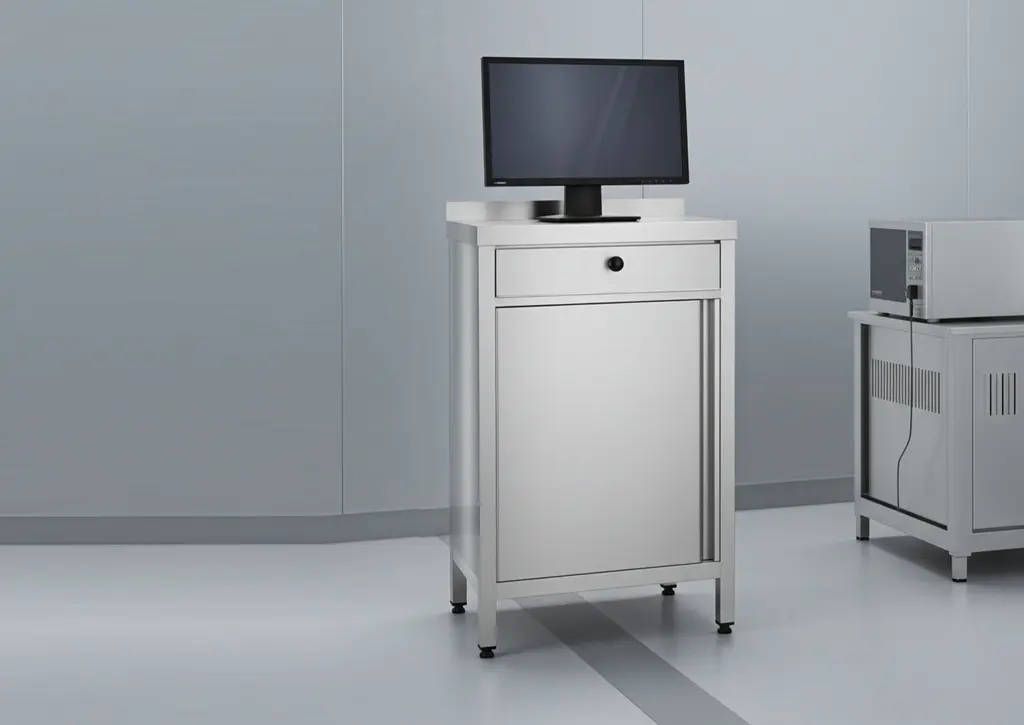 Unsere Computerschränke werden aus dem Edelstahl Werkstoff 1.4301 gefertigt, sind fest verschweißt und robust. Die Schrankeinteilung bietet eine optimale Unterbringung von Computern in sensiblen Bereichen. Die Schrankbeine sind mit höhenverstellbaren Kunststoff-Verstellgleitern ausgestattet um Bodenunebenheiten auszugleichen.